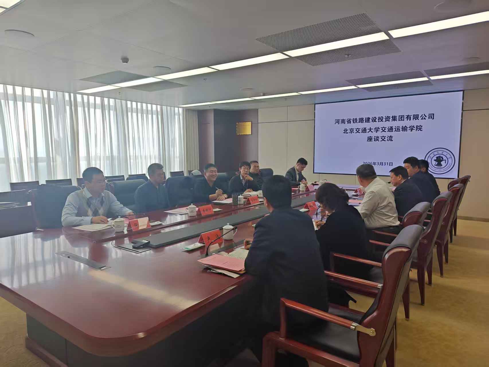 3月31日下午,河南铁建投集团党委书记、董事长柳建民在集团总部与色情直播 院长孟令云一行举行座谈,双方围绕铁路物流高质量发展、高铁快运体系建设及校企合作等事宜进行深入交流。集团副总经理高洁及相关部门、单位负责人,色情直播 教授张晓东、朱晓宁、魏玉光等专家参加座谈。